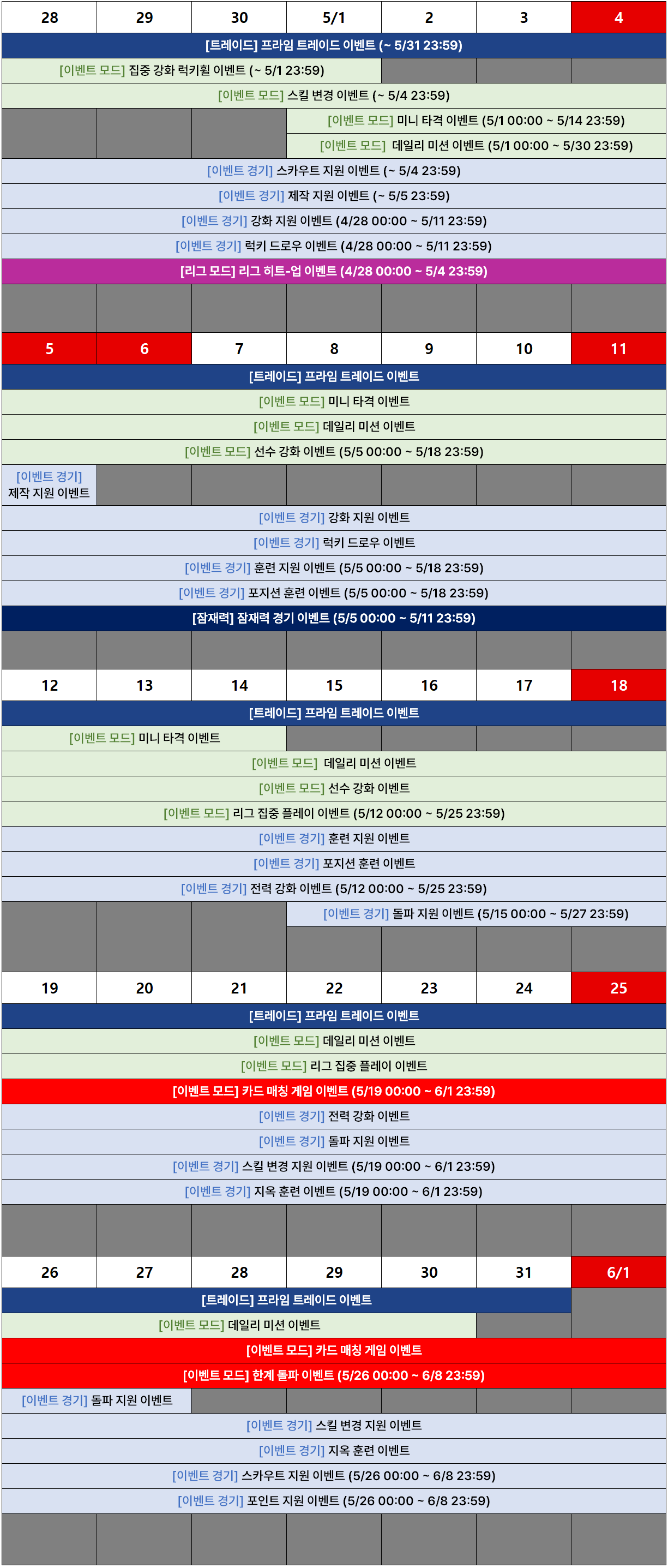 ■ 5월 인게임 이벤트 스케줄 안내