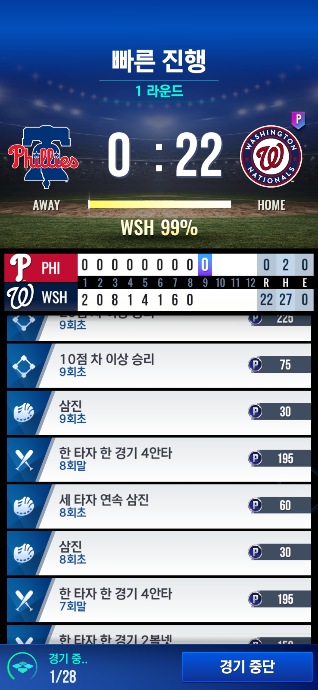경기중단 눌러도 반응이 없습니다
