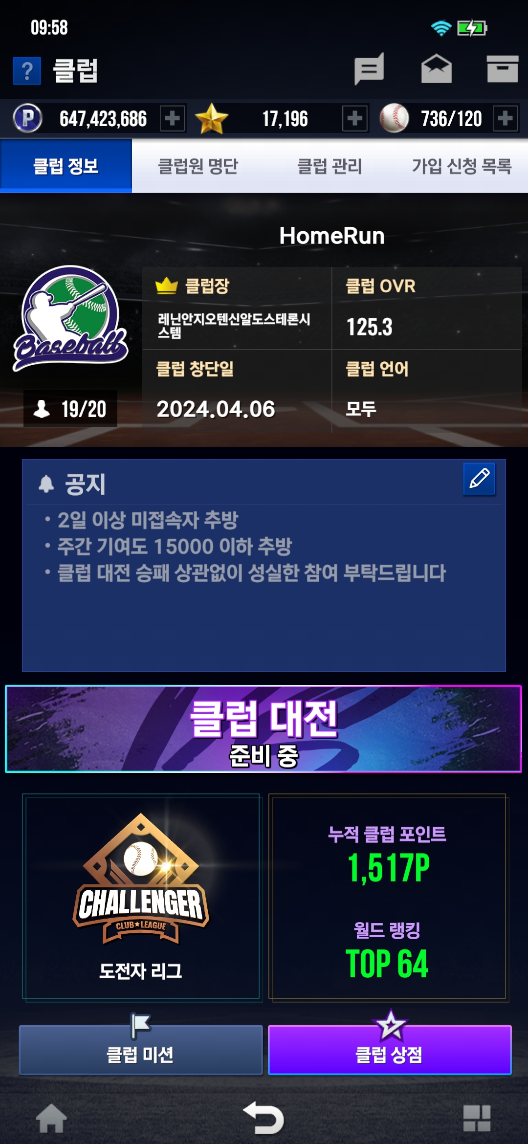 •클럽 대전 승패 상관없이 성실한 참여 부탁드립니다