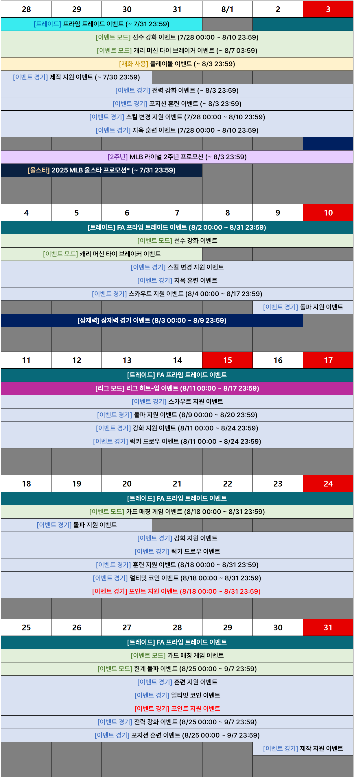 ■ 8월 인게임 이벤트 스케줄 안내