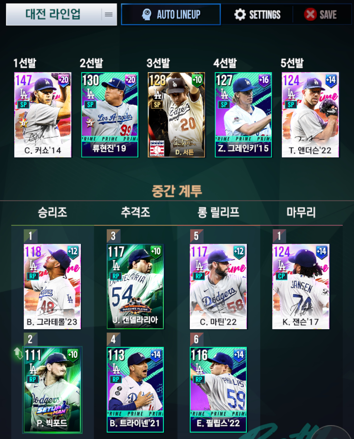 무과금으로 다저스 덱 키웠는데.. 유격,좌익,선발투수 정도만 보강하면 될까요?