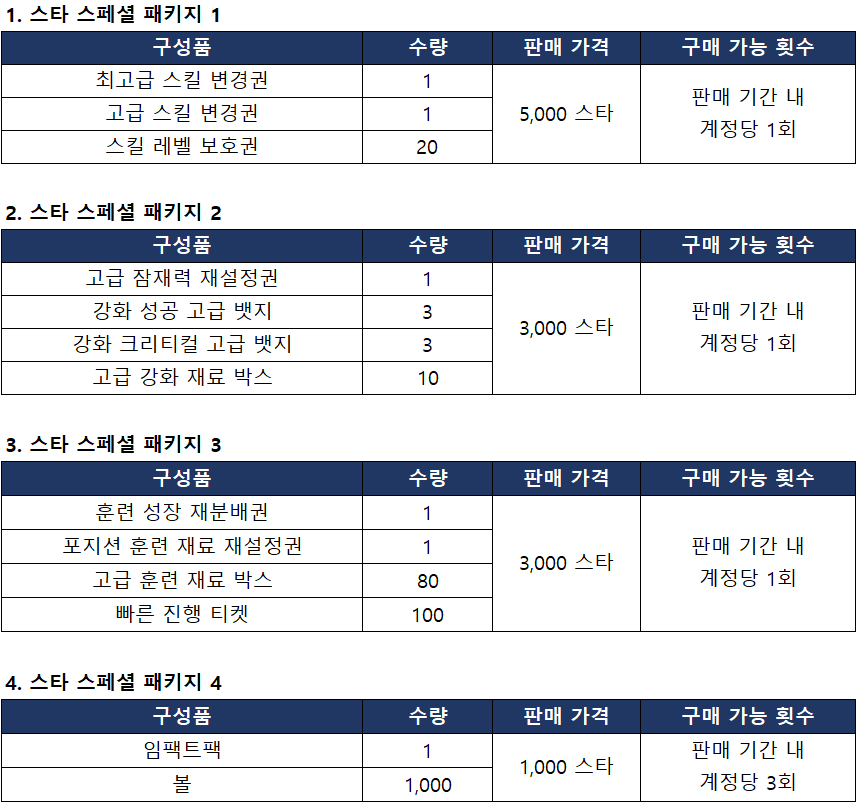 ■ 스타 스페셜 패키지 판매 안내