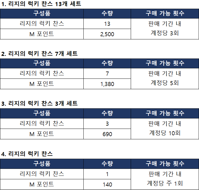 ■ 리지의 럭키 찬스 묶음 패키지 판매 안내