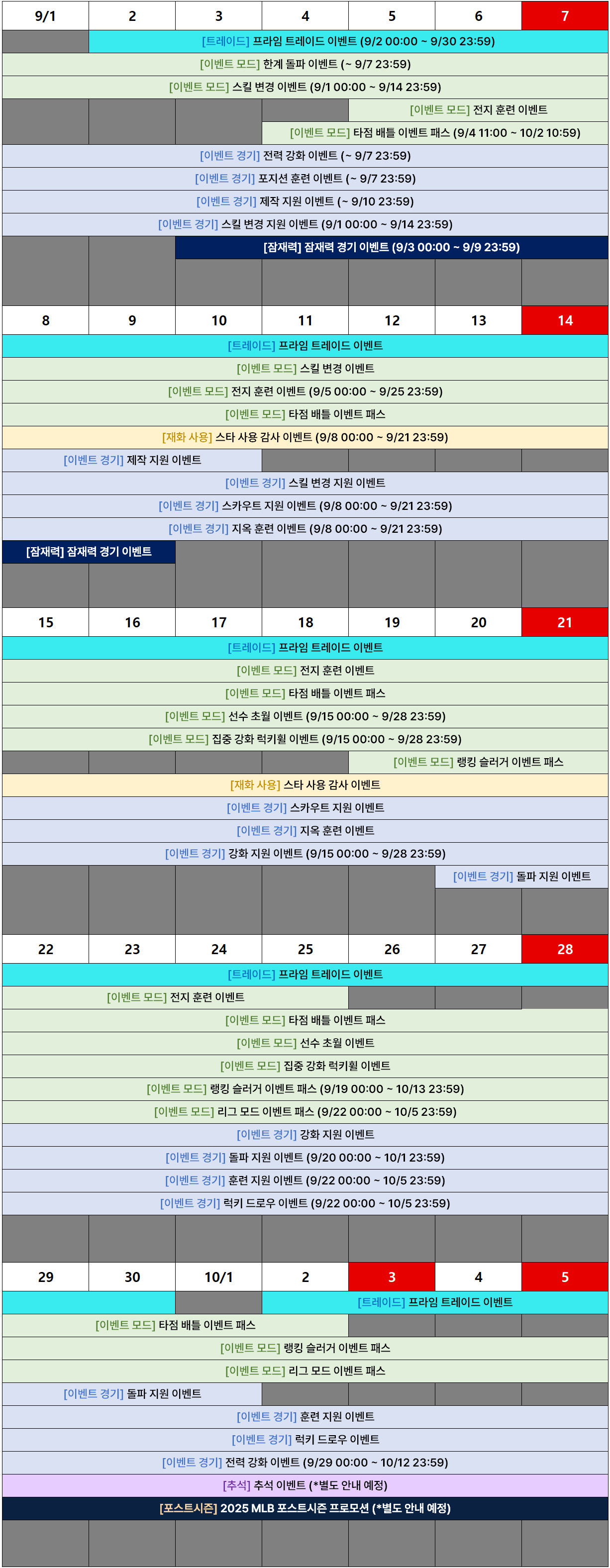 1. 전지 훈련 이벤트 (9/5 00:00 ~ 9/18 23:59) → (9/5 00:00 ~ 9/25 23:59)