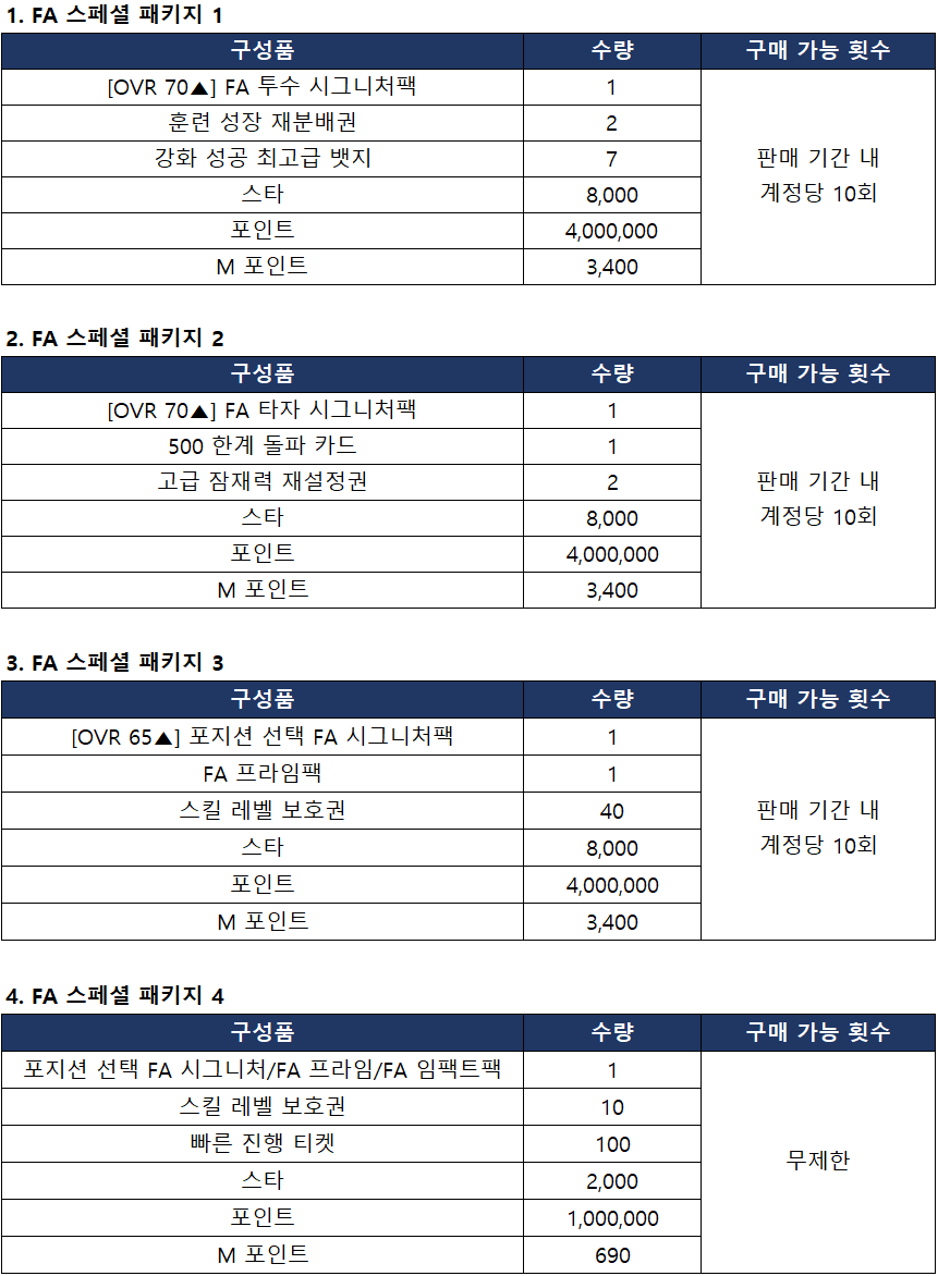 ■ FA 스페셜 패키지 판매 안내