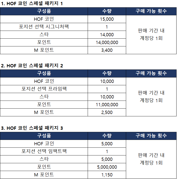 ■ HOF 코인 스페셜 패키지 판매 안내
