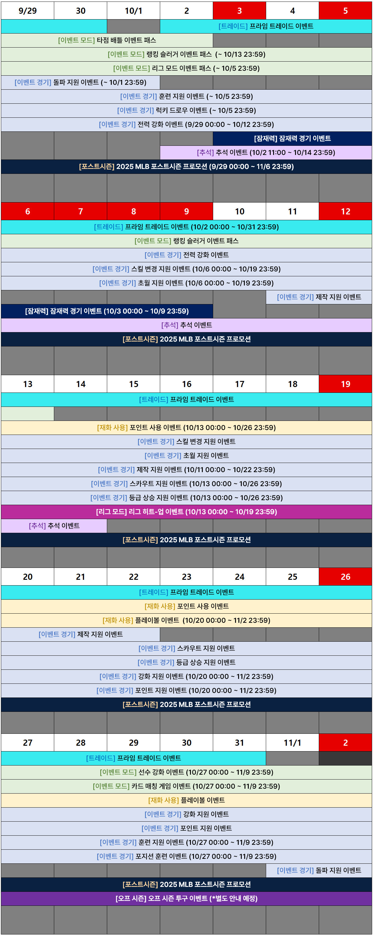 10월의 인게임 이벤트 일정을 소개드립니다.