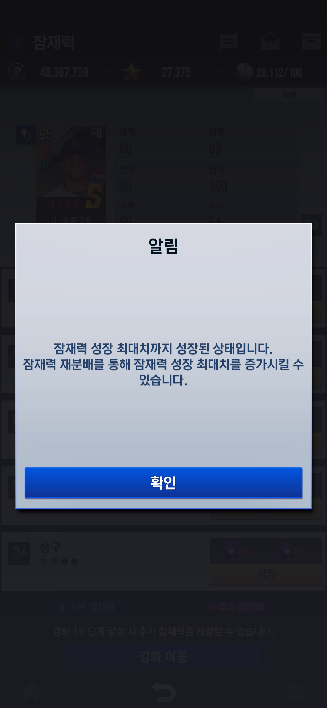 저런 창이 뜨네요. 잠재력 재분배 어떻게 하는거죠..? 찾아봐도 안보여서요
