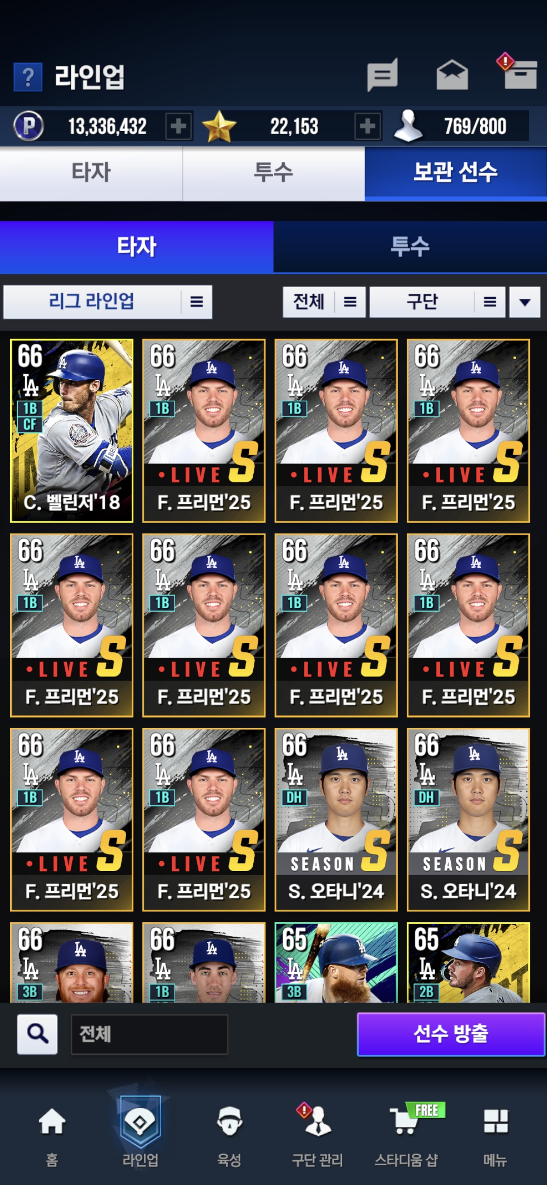 25오타니 일카가 하나도 나오지를 않습니다. 25프리먼은 저렇게 나오는데 투수오타니든 타자오타니든 단 한개도 안 나왔습니다. 좀 나왔으면 좋겠습니다.
