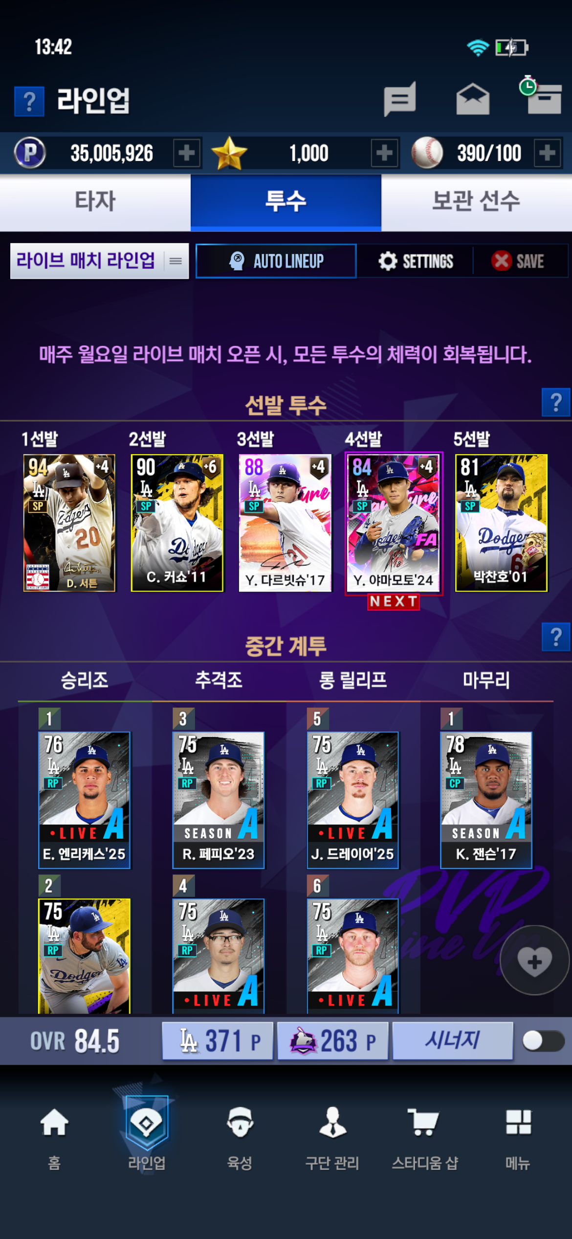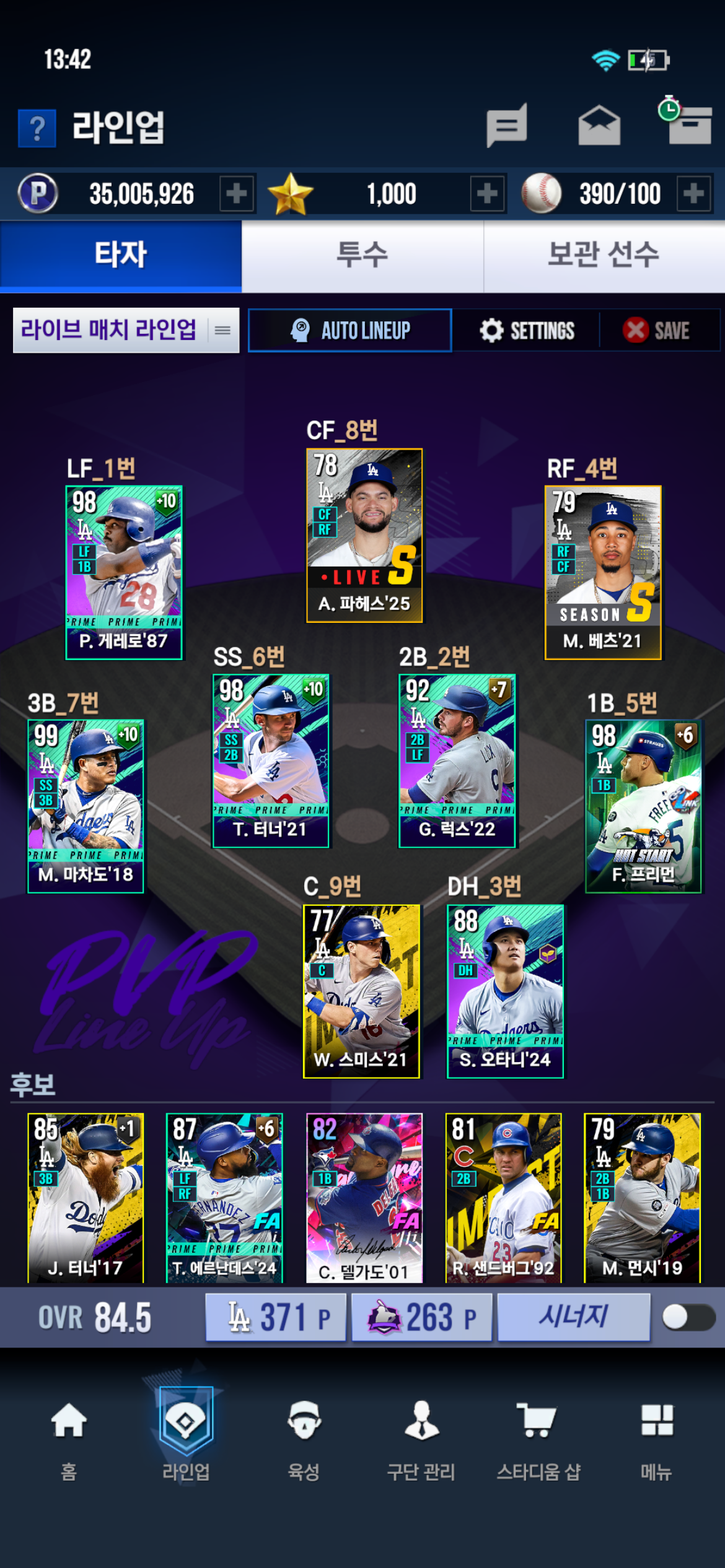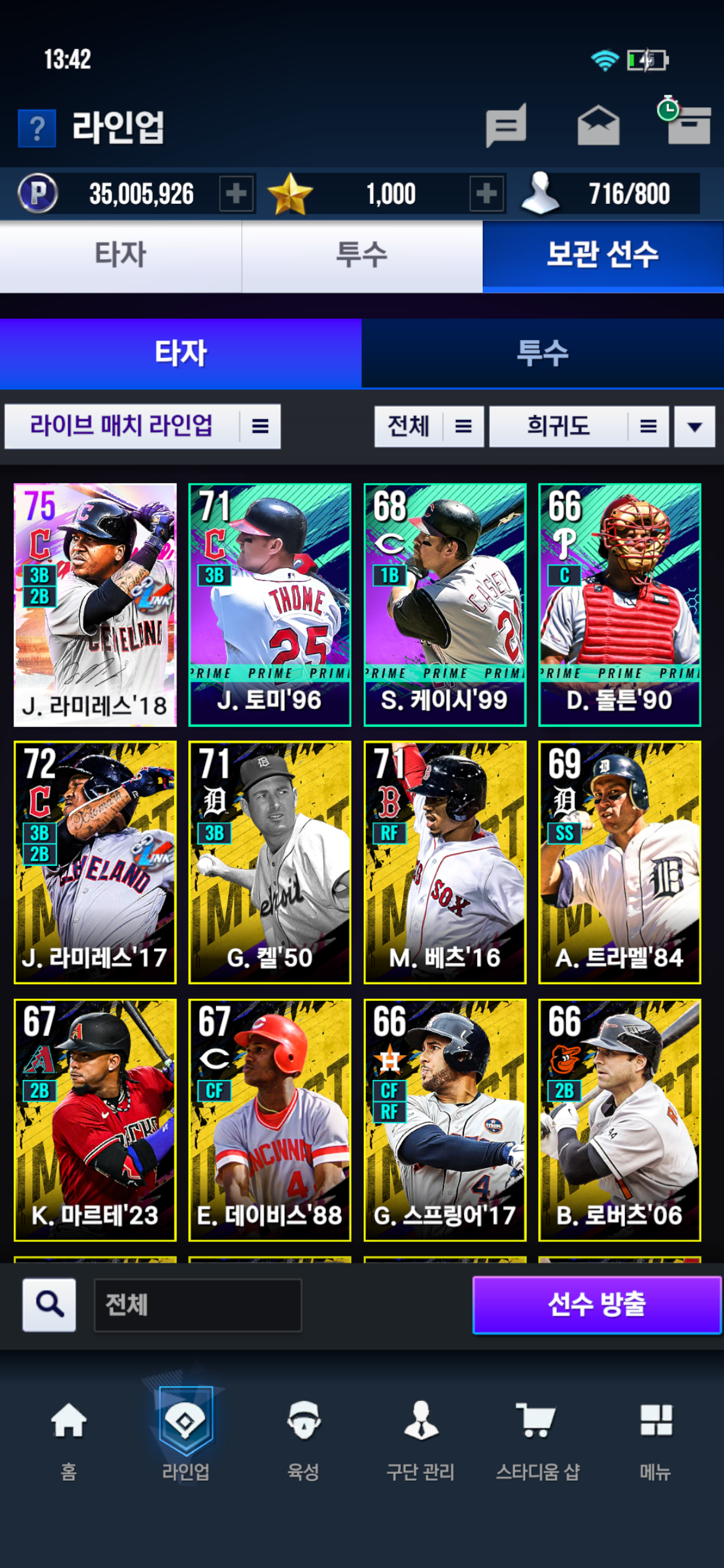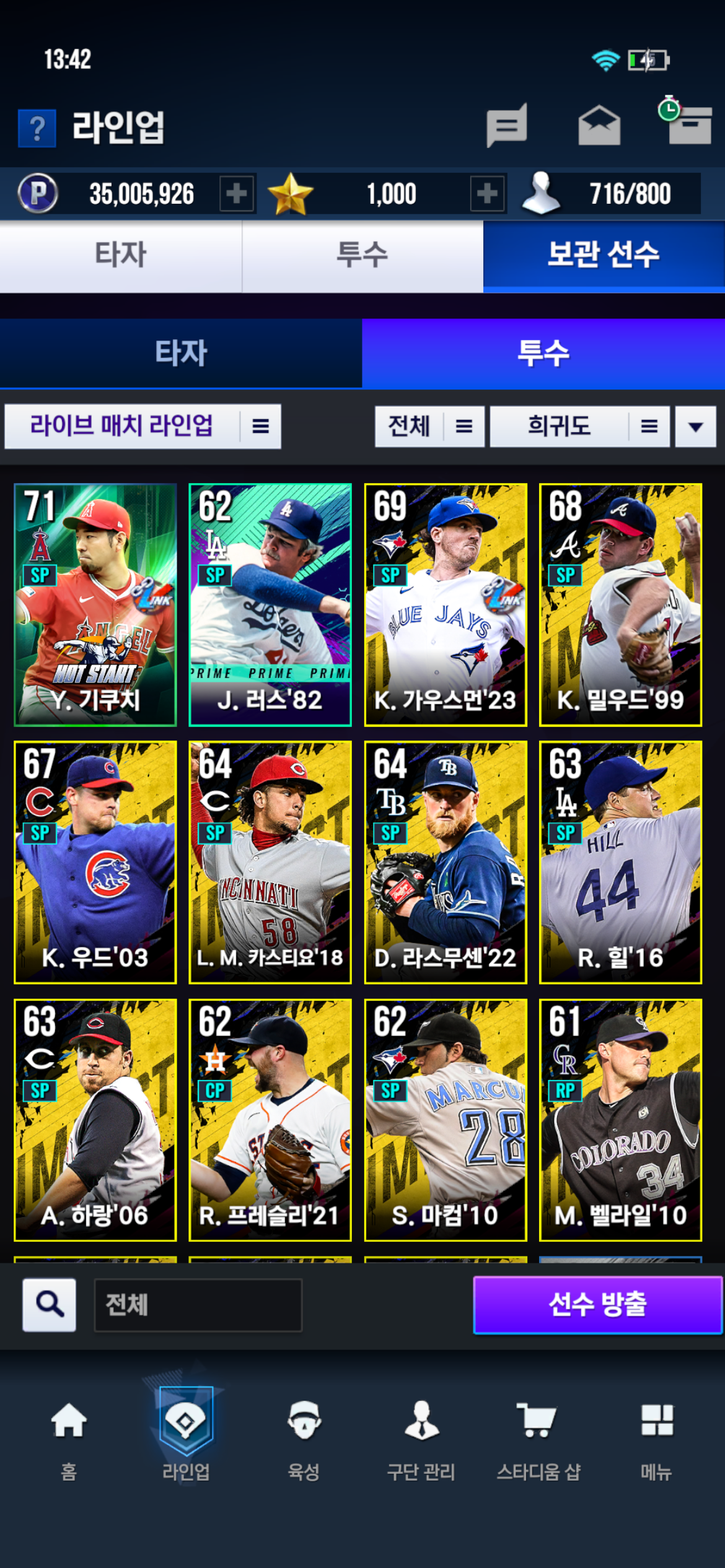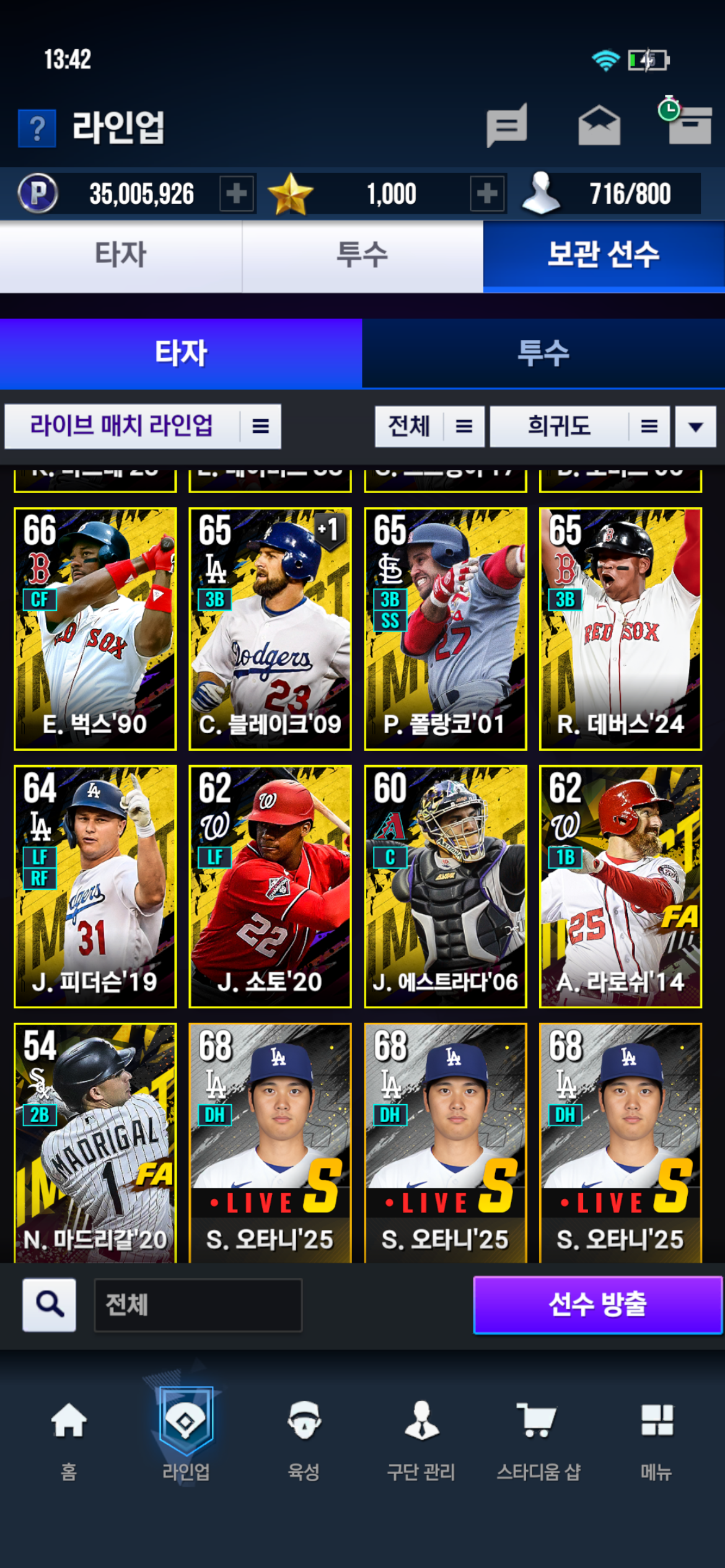 선수선택 임펙트상자 하나있고 주력선수는 오타니로 진행하고 있네요!