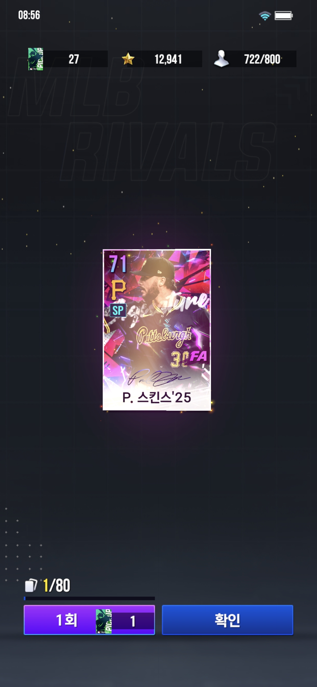 방금 무료뽑 1회에서 fa 시그 시킨스 떳네여 ㄷㄷ.. 기운받아가세욥