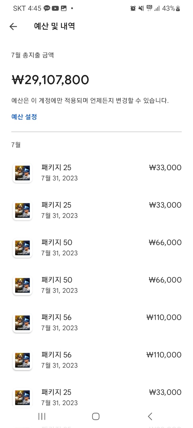 제가 대충 보니 7~8월 2개월간 이게임에 4천만원 이상을 과금했더군요 금요일까지 답변 없을시 차주 환불소송 진행하겠습니다