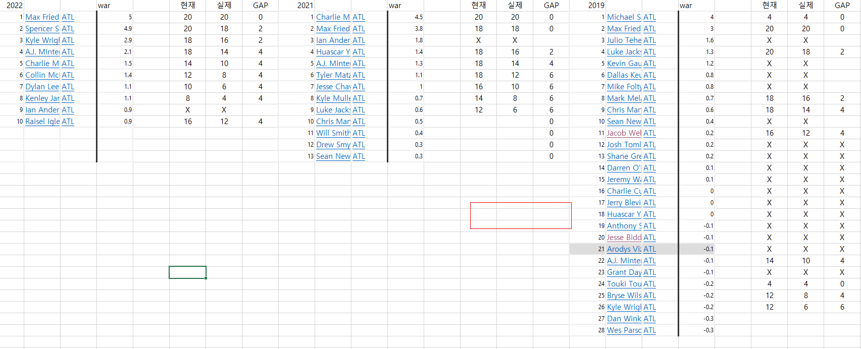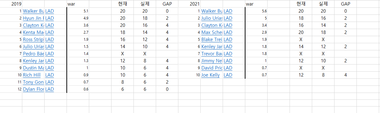 이건 단지 제 생각대로 만든 것이긴 한데 현재 덱스코어로 지정되어 있는 수치는 정확합니다. 시즌은 fwar에 따라 20 18 16 14 순으로 덱스코어를 주는 것으로 아는데 초기 라이센스가 없어서 추가된 선수의 덱 스코어를 현재와 같이 중복으로 주었습니다. 이는 빠르게 바꾸어야 한다고 생각하는데 빠르게 조치바랍니다.
