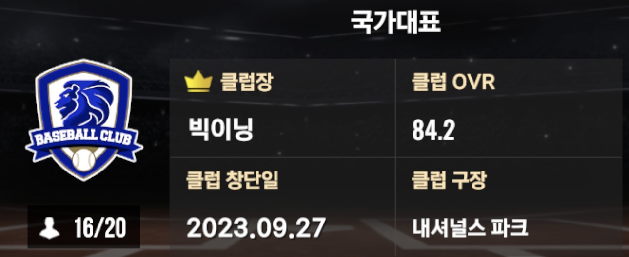 (MLB X 국가대표) 국가대표 클럽에서 모집합니다 (OVR87이상)