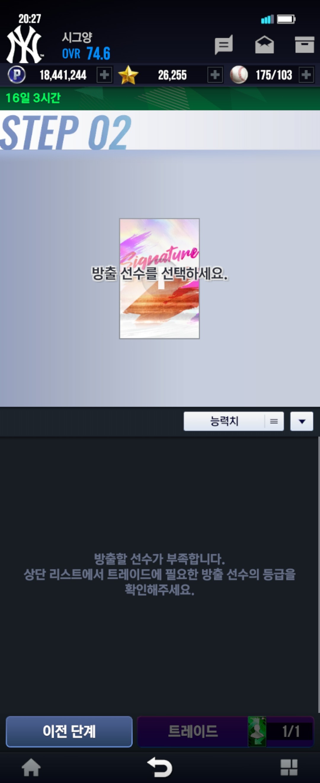 오늘 트레이드 보상을 다 받고 교환 하려는데 선수가 사라졌습니다
