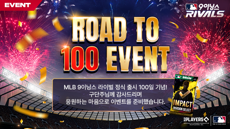 벌써 MLB 9이닝스 라이벌의 정식 출시가 100일이 지났습니다! 변함 없이 사랑해주신 구단주님들께 감사 드리며, 100일을 기념하기 위한 특별한 이벤트를 준비해왔습니다!