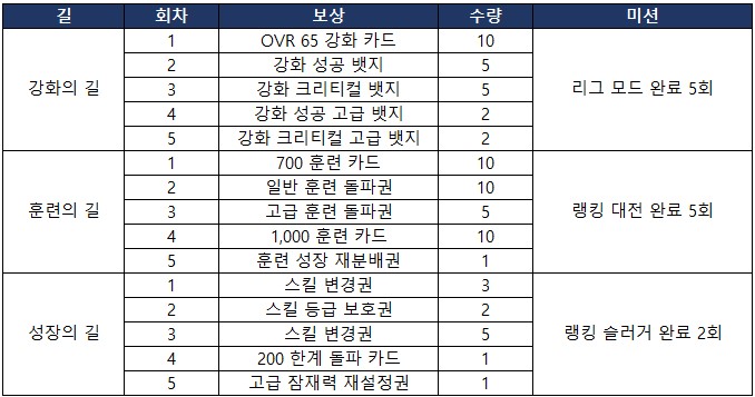 - 진행 중인 길의 미션은 일 1회 완료할 수 있고, 미션 완료 시 회차별 보상을 획득할 수 있습니다.