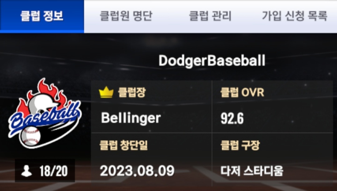 챔피언리그 소속 DodgerBaseball 클럽원 모집