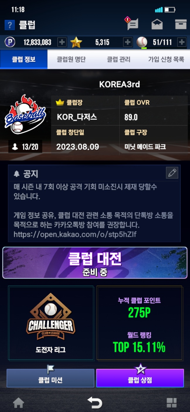 매 시즌 내 공격 횟수 6회 미참 까지 제재 없이 편하게 클랜 대전 즐겨주시면 됩니다.