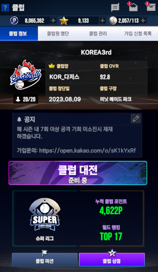 클럽 관리 및 정보 공유를 위한 클럽 단톡방 참여를 권유하고 있습니다.