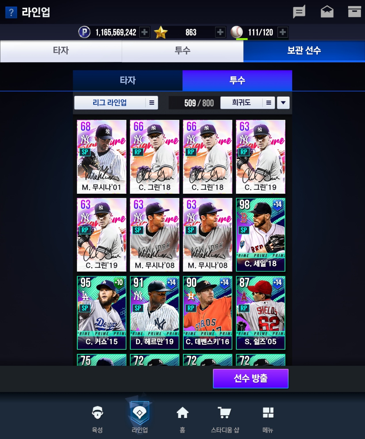 이 게임에 적다면 적은 많다면 많은 돈을 사용하고 있고, 정말 재미 있고 이 게임을 좋아하기 때문에 그만큼 돈을 쓰고 있는 사람입니다. 단언컨데 현재 MLB 9이닝스 라이벌 전체 유저중 사용한금액으로 최소 TOP3 안에 들 것이고