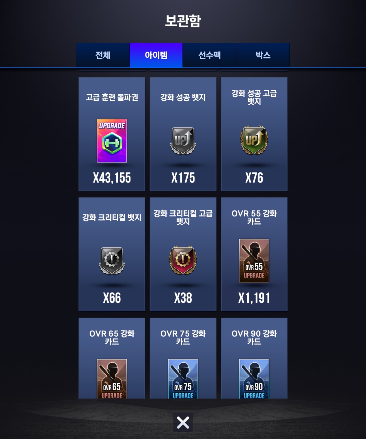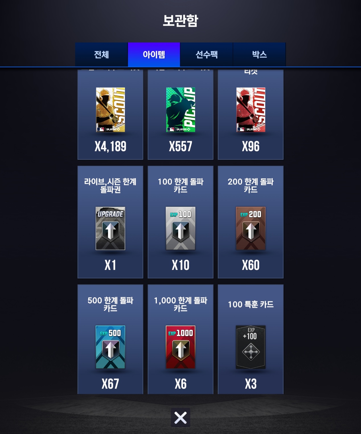 아래 사진은 제 보관함입니다 현재 후보도 5한돌 3특훈을 다 끝내놓은 상태 인데도 한계돌파카드 약 6.1만