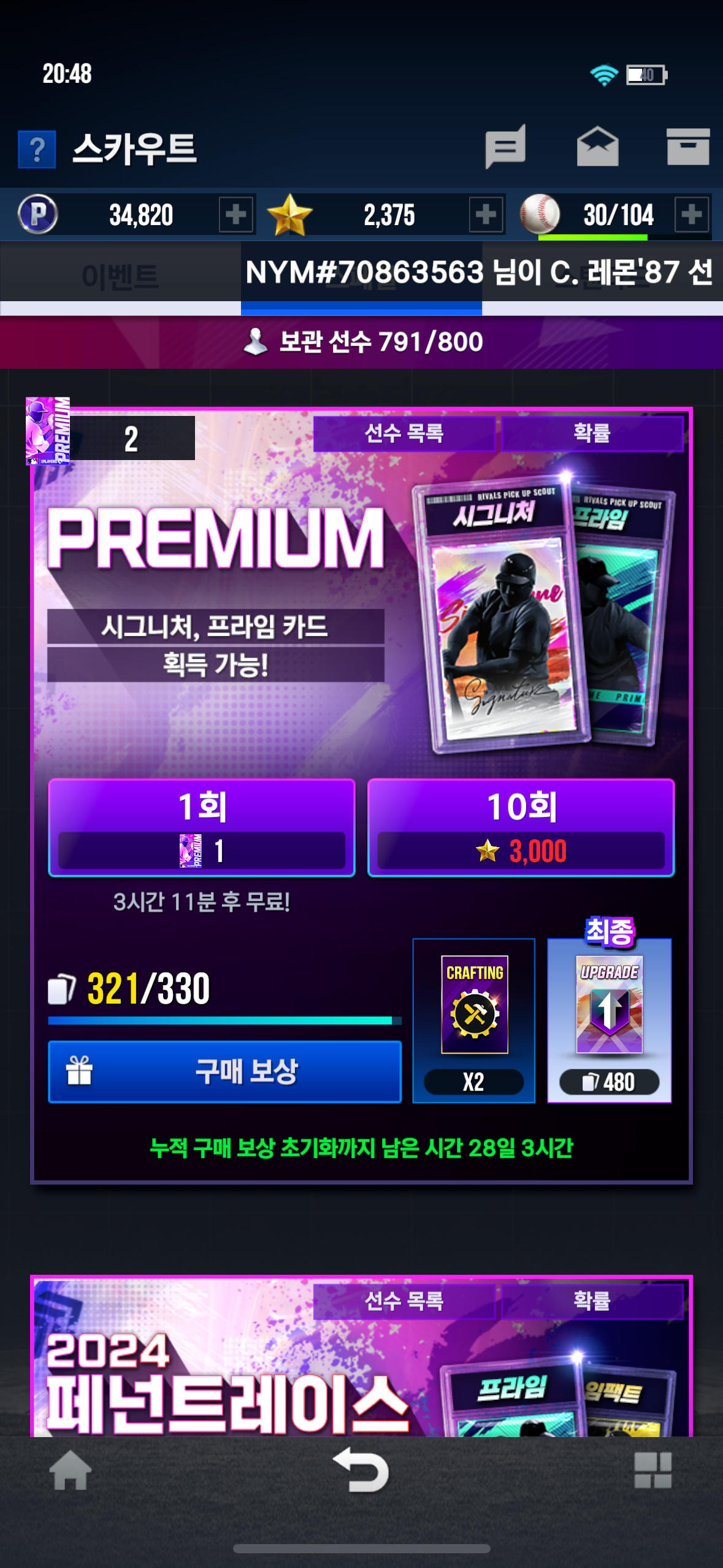 프리미엄뽐기 있잖아요 최초보상 480뽐 한달동안 다 못하면 초기화 되나요??