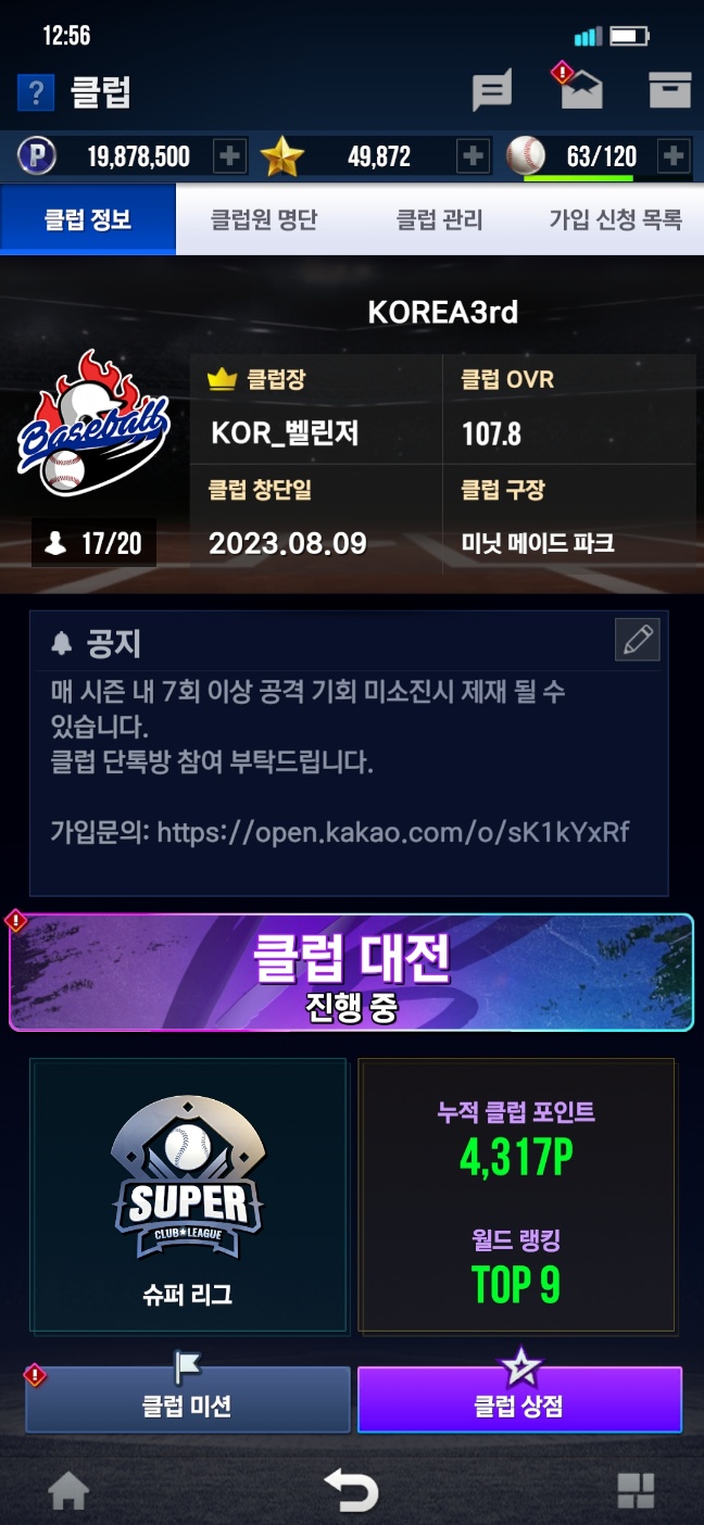 클럽 관리 및 정보 공유를 위한 클럽 단톡방 참여를 부탁드립니다.