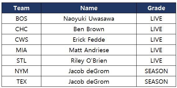 - 아래 명단의 신규 선수가 추가됩니다.