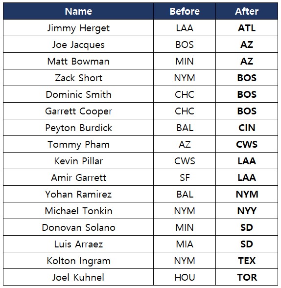 - 아래 선수의 소속팀이 변경됩니다.