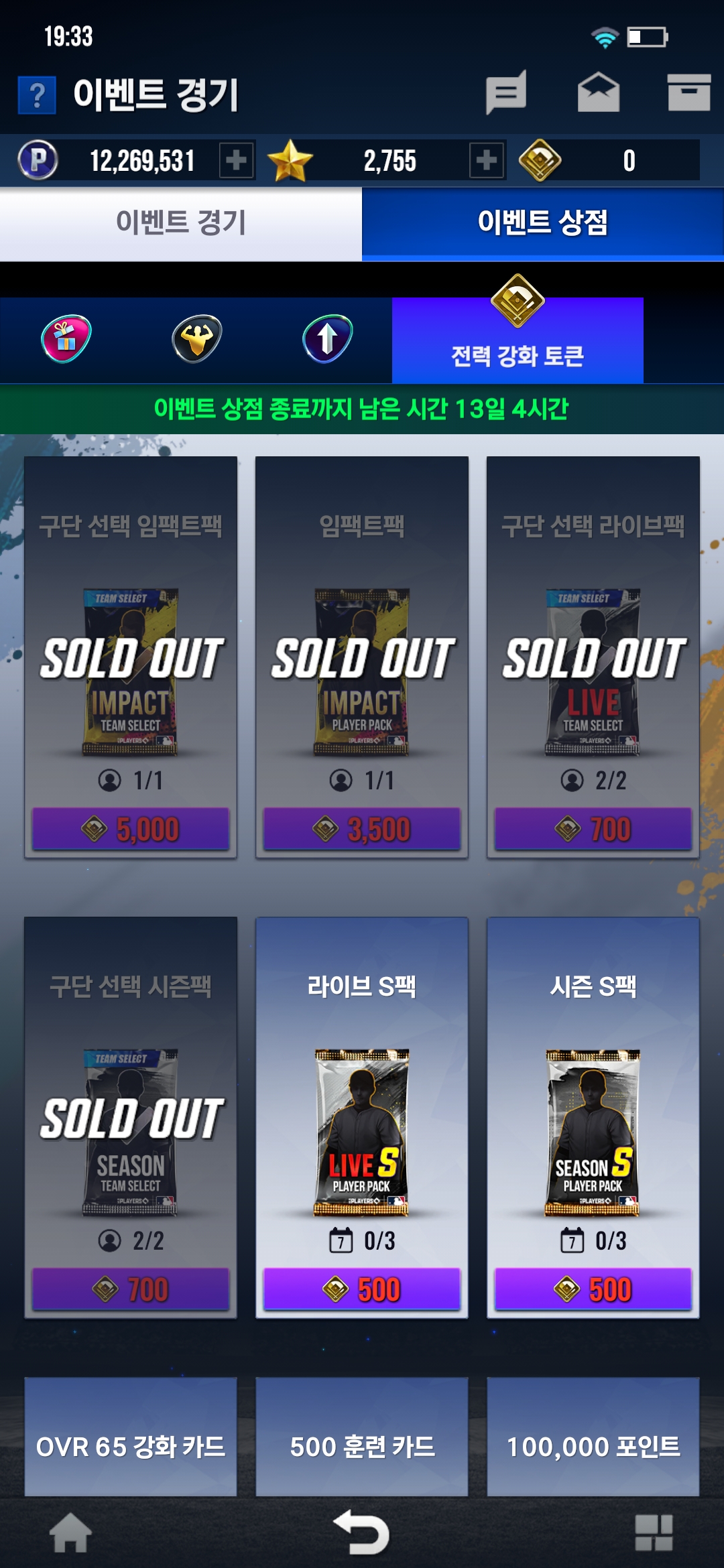 전력강화 이벤트 플레이 한 적도 없는데 솔드아웃 돼있습니다
