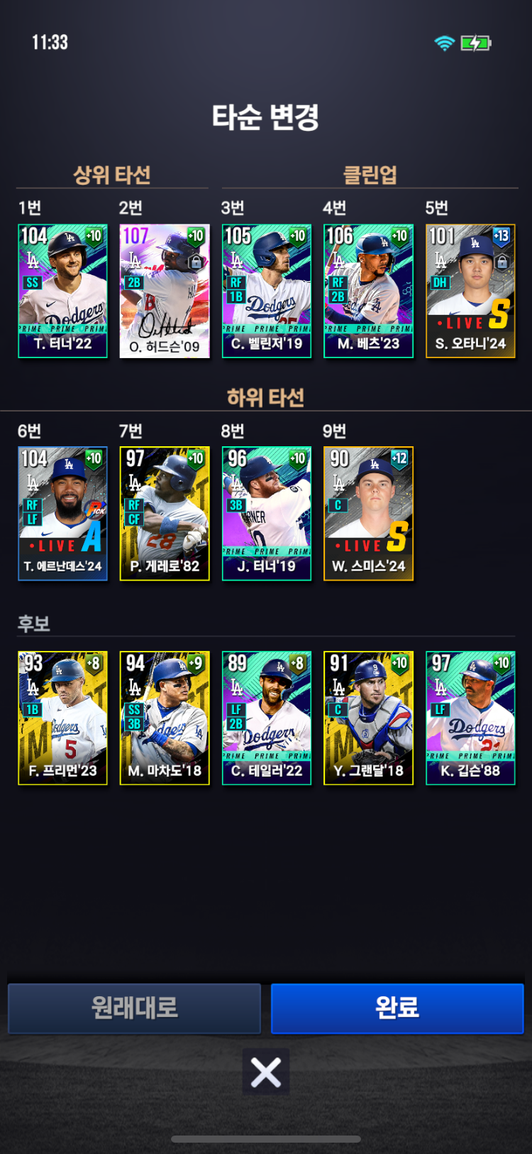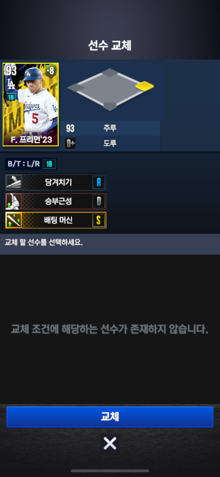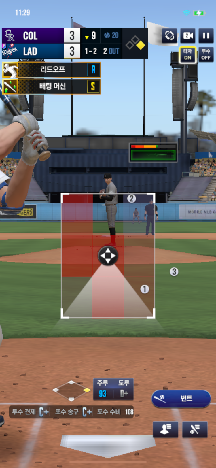 수비를 포수(그랜달)로 선택하라고 나옴.