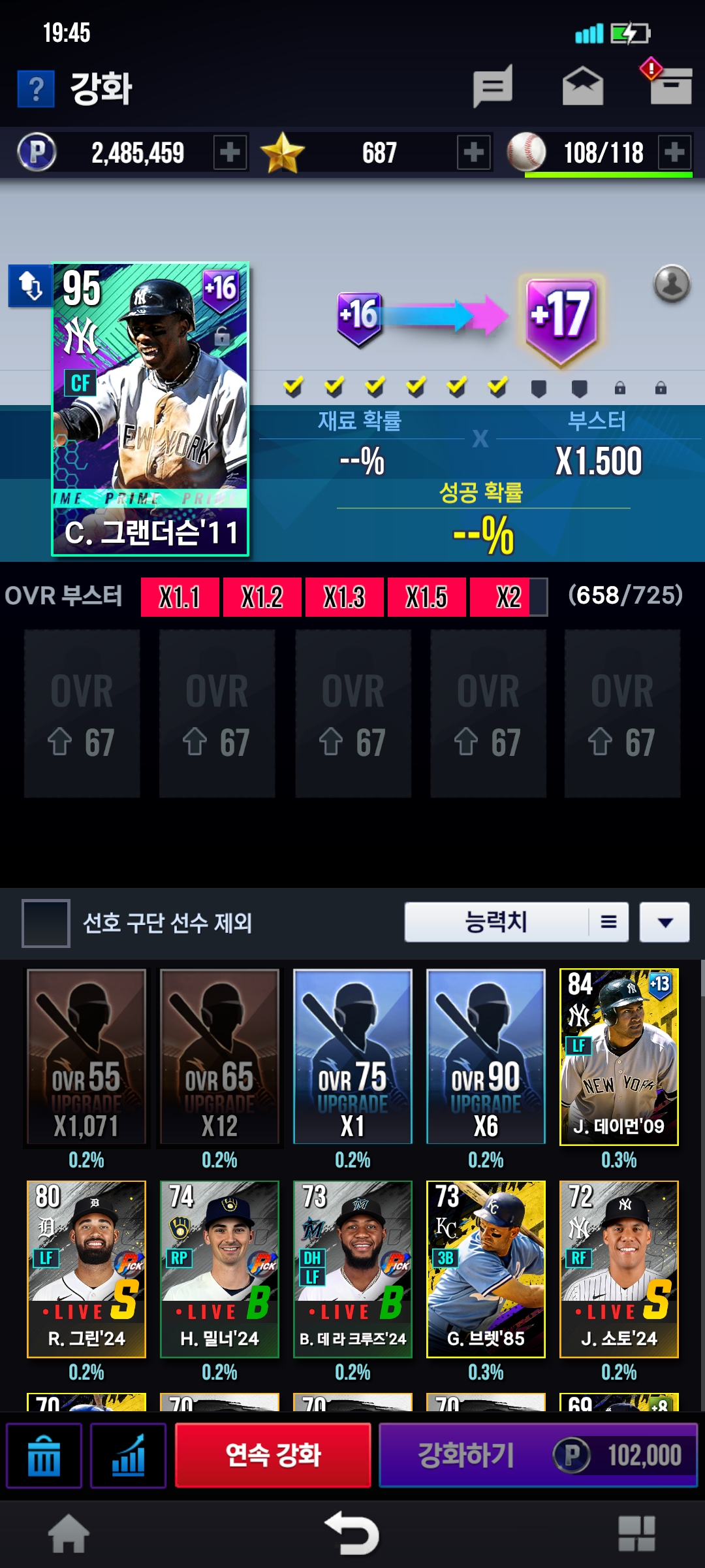 그냥 게이지 다 채워야 강화를 되게끔 만들어라