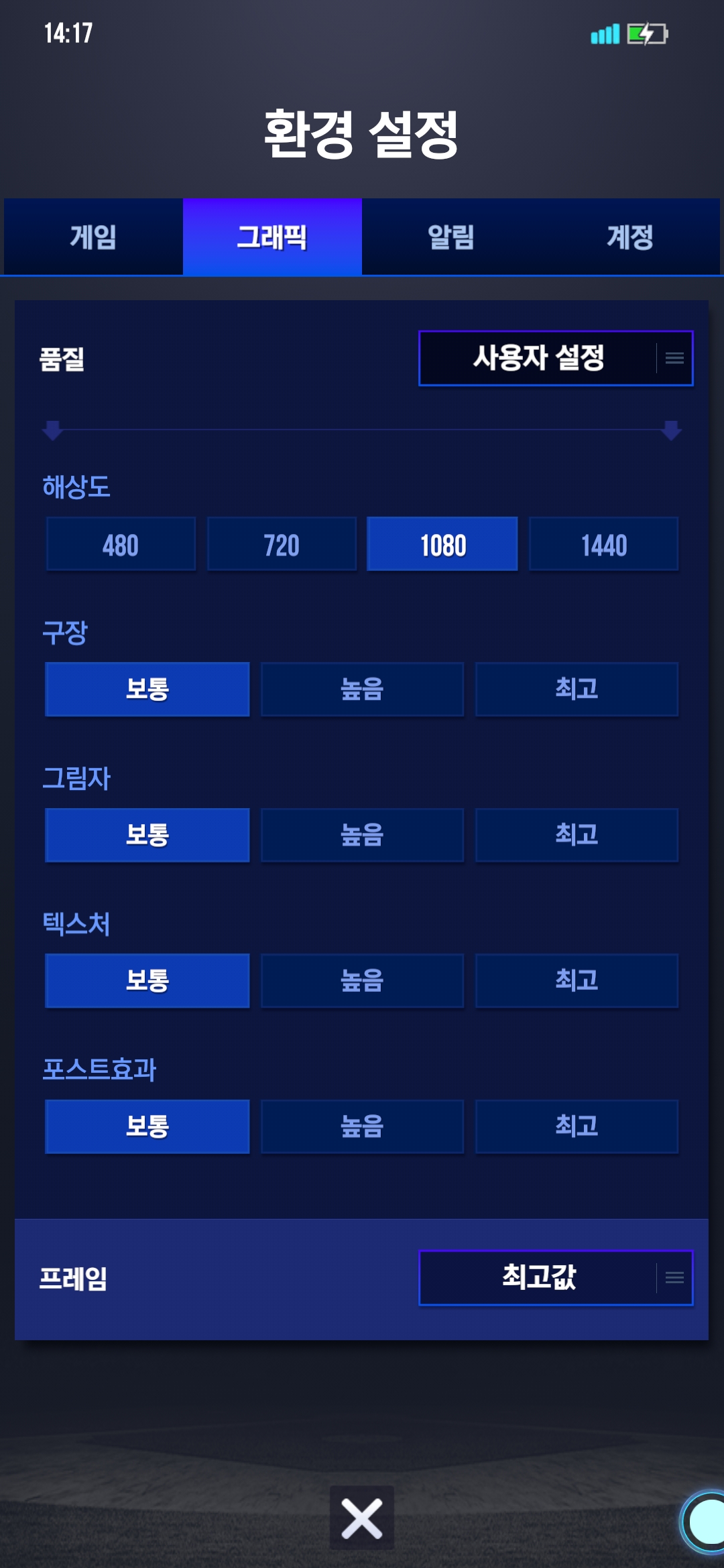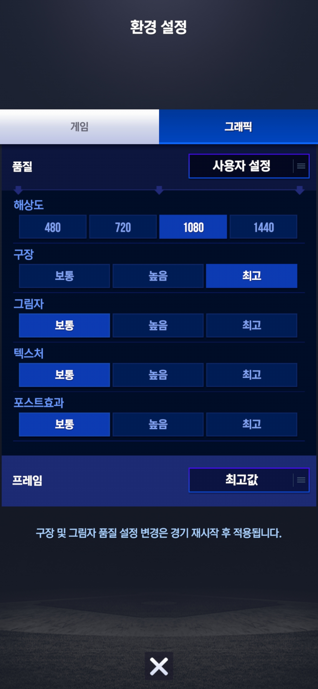 인게임 들어가면 구장옵션만 최고높음으로 고정되어 있어서 관중들만 이질적으로 표현되어있음
