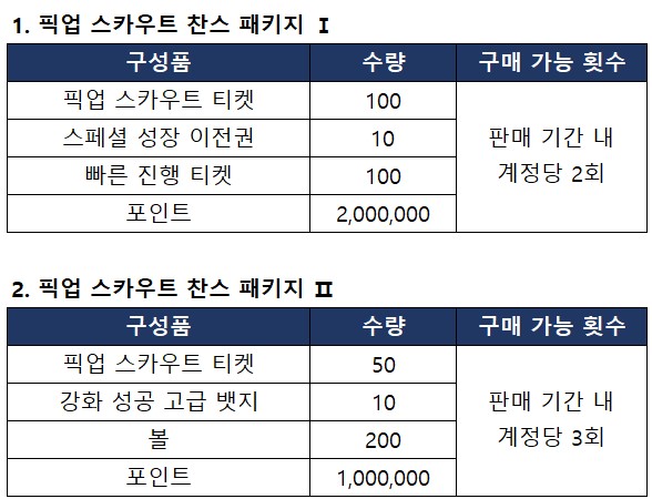 ■ 픽업 스카우트 찬스 패키지 판매 안내