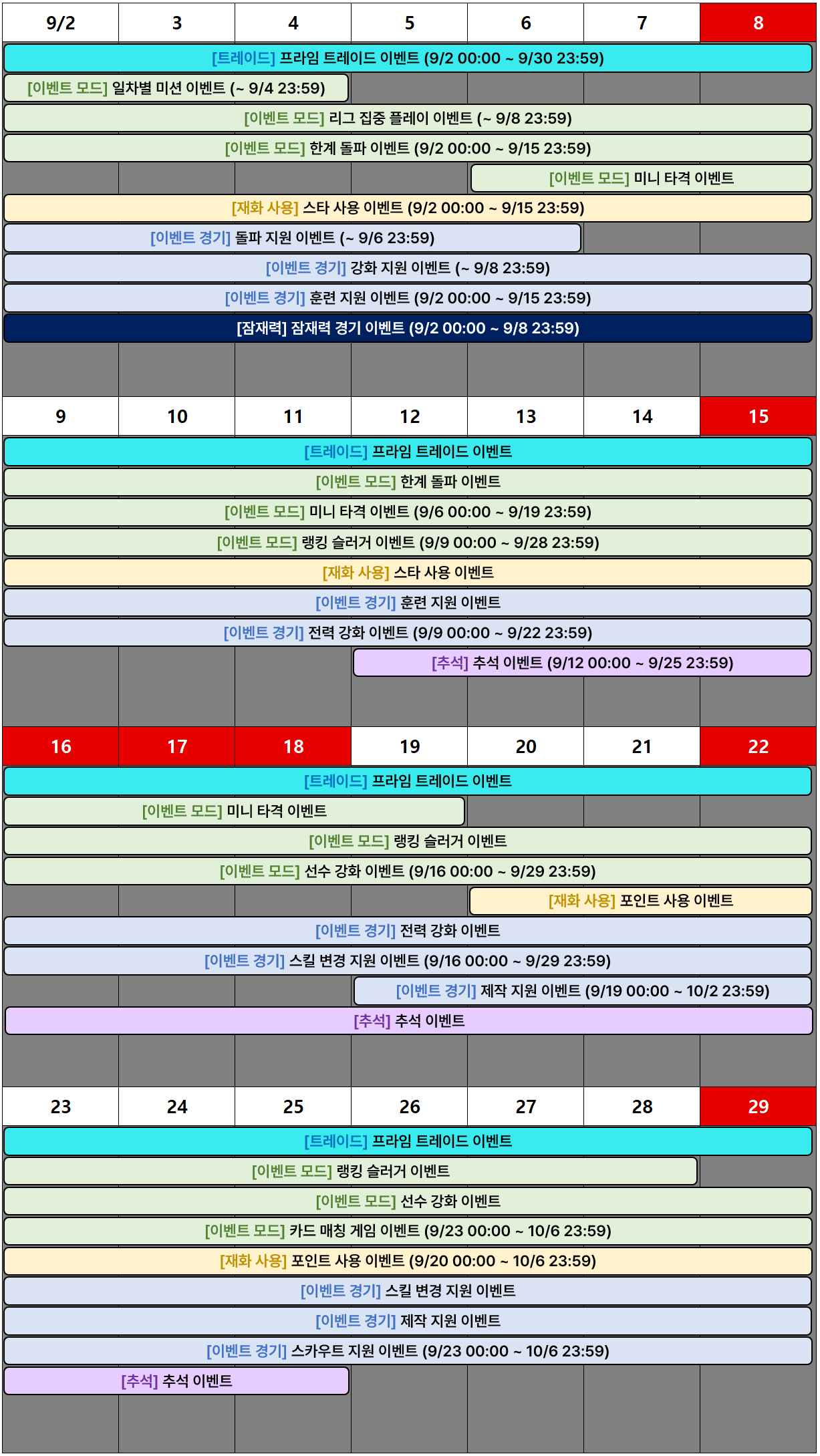 9월의 인게임 이벤트 일정을 소개드립니다.