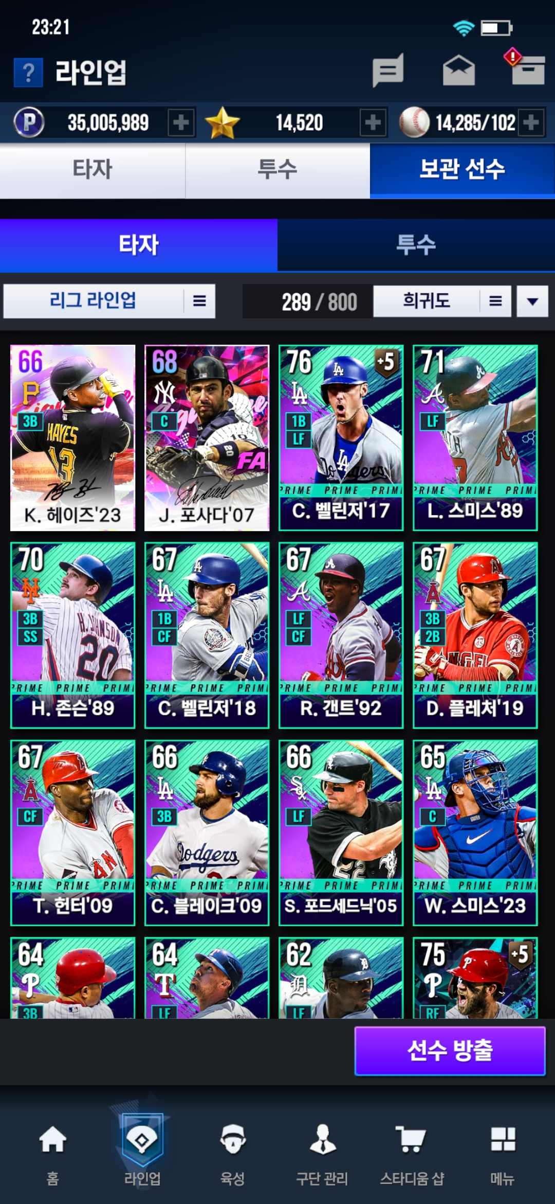 1.제 선수들인데 저는 포지션별로 리그대표 선수들로 fa해서 라인업 꾸리고 싶어요(ex. 외야 트라웃 저지 아쿠냐..) 그래도 괜찮은지