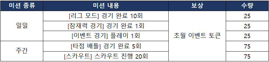 - 데일리 및 주간 미션 진행을 통해 초월 이벤트 토큰을 획득할 수 있습니다.