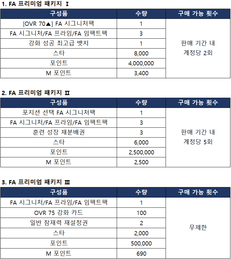 ▼ FA 프리미엄 패키지 누적 구매 보상