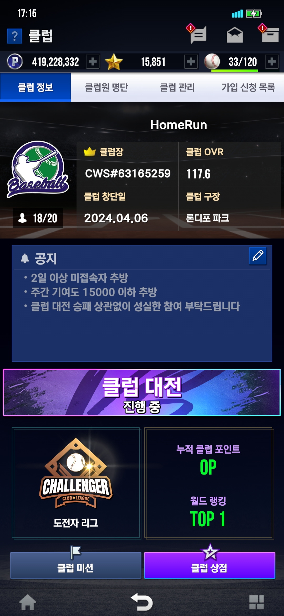 •클럽 대전 승패 상관없이 성실한 참여 부탁드립니다