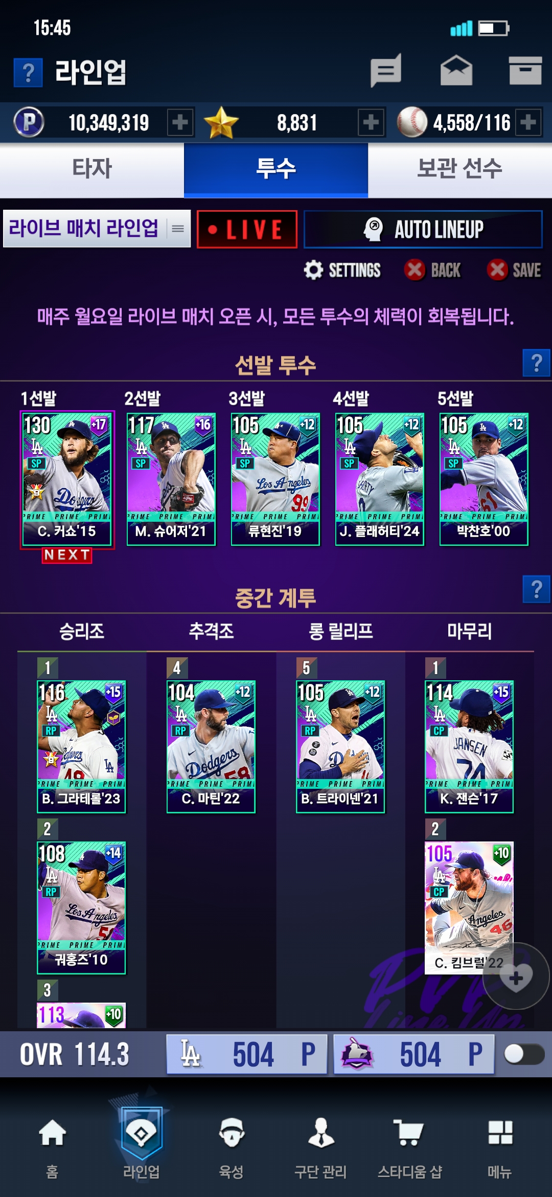 주럭선수는 그라테롤이고 커쇼는 등상 준비하고 있습니다.(얼티밋만 모으면 됩니다.얼티밋은 25000정도 있습니다.)