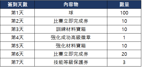 ※ 簽到獎勵可至‘主畫面 > 畫面下方活動選單 > 簽到 > 簽到活動’中獲得。