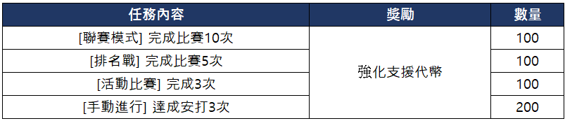 ※ 完成任務後,請務必於任務重置前領取強化支援代幣。逾期將無法領取。