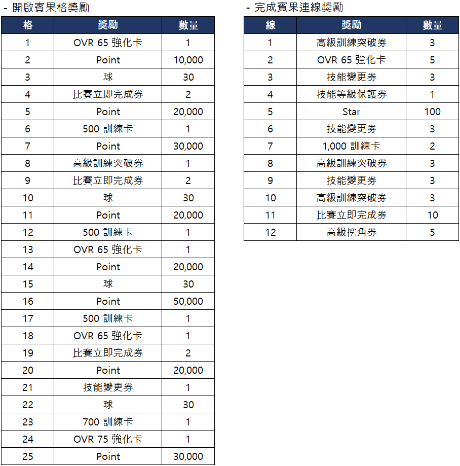 - 聯賽模式比賽結束時,將根據比賽結果隨機獲得活動PT。