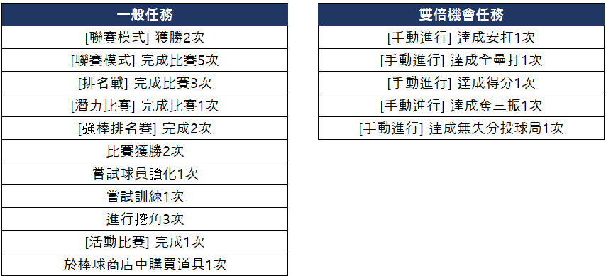 ※ 完成9次任務時,與前9次的雙倍機會啟動次數無關,將無條件啟動雙倍機會。
