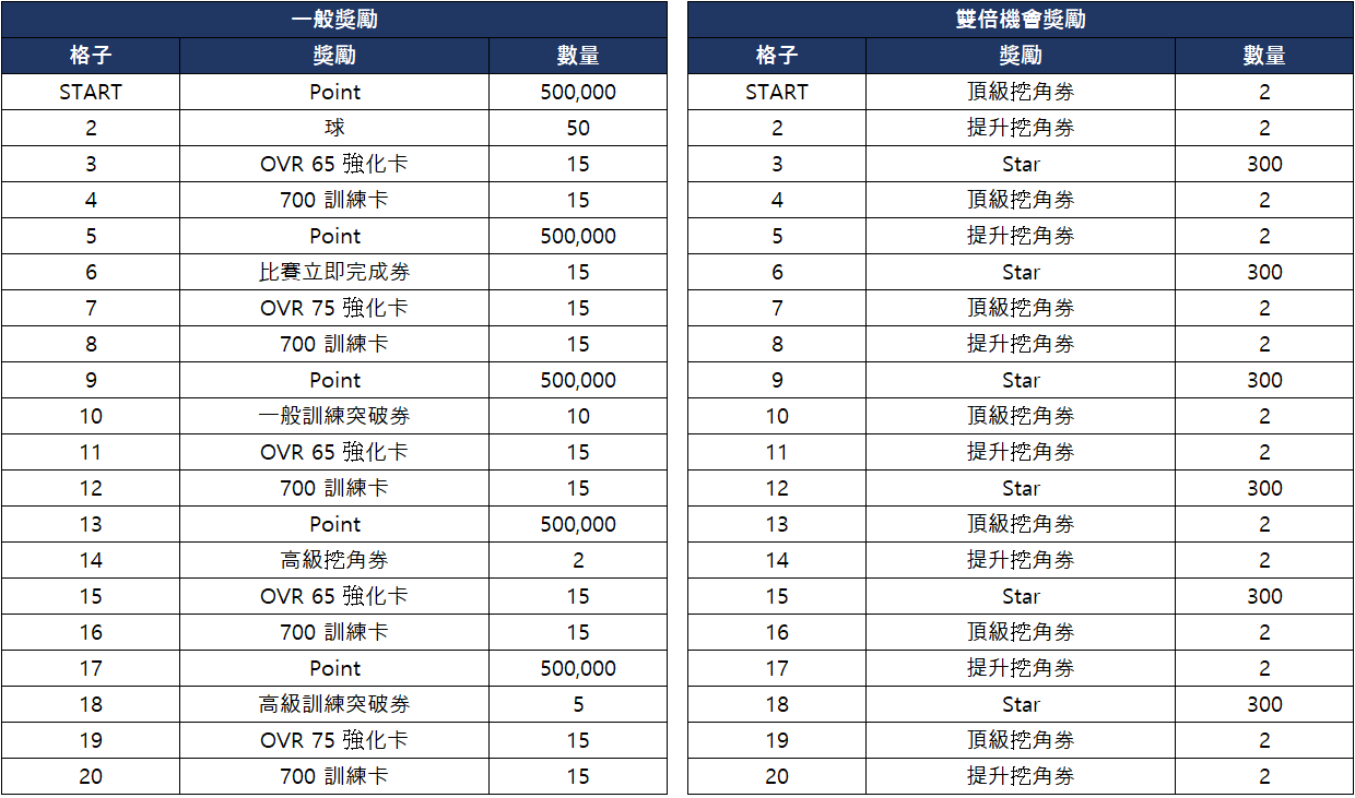 - 啟動雙倍機會到達的格子,將可進行雙倍機會任務,以獲得雙倍機會獎勵。