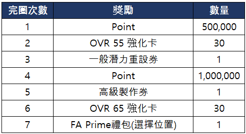 - 根據累計完圈次數,可獲得完圈獎勵。