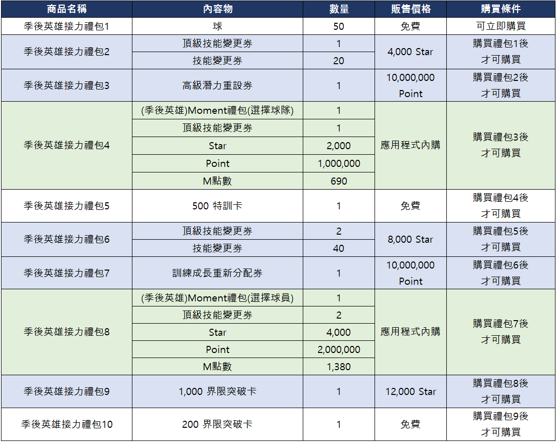 - 需購買前一階段的禮包後,才能購買下一階段的禮包。