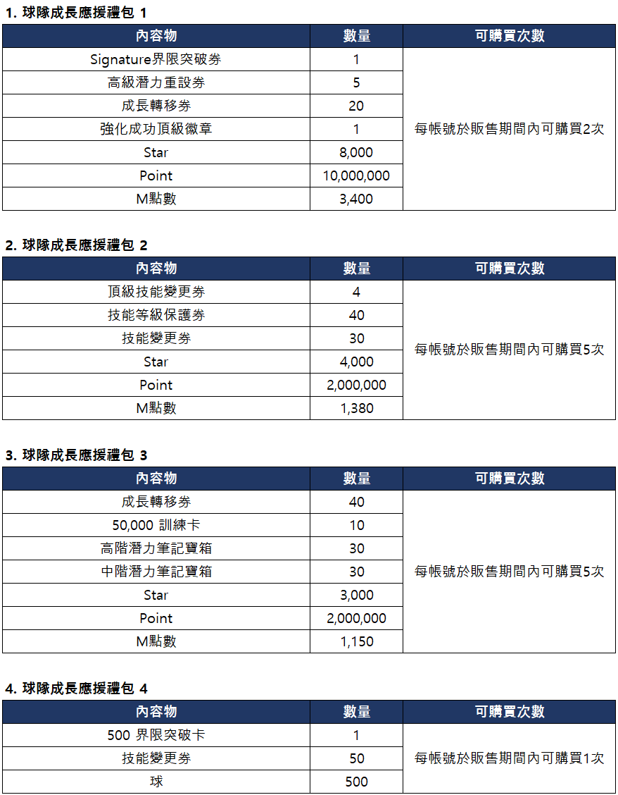 - 球隊成長應援禮包 4為可透過6,000Star購買的商品。