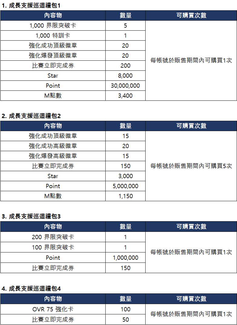 - 成長支援巡迴禮包3、4為可透過Star及Point購買的商品。